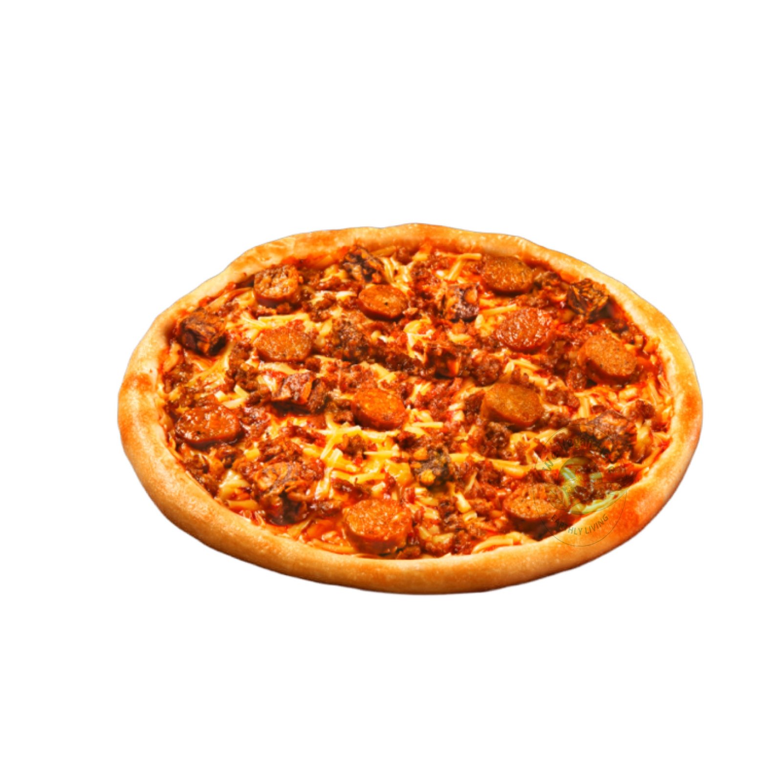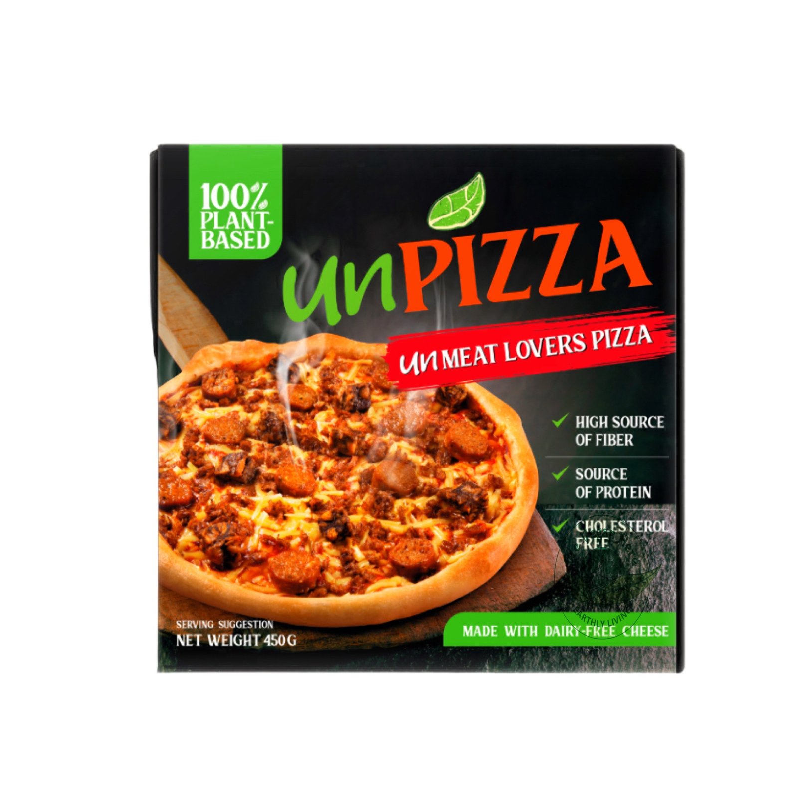Dough [Bread Flour, Water, Fresh Yeasts, Iodized Salt, Olive Oil, Sugar, Sour Dough, Bread Improver], Vegan Cheese [Water, Modified Potato Starch, Vegetable Fat, Iodized Salt, Citric Acid (Food Acid), Nature-Identical Flavor, Colors (Annatto, Titanium Dioxide)], Pizza Sauce [Water, Tomato Paste, Modified Starch, Soy Sauce, Dextrose Monohydrate, White Vinegar, Iodized Salt, Natural and Nature-Identical Flavor, Citric Acid (Acidulant and Spices], unMEAT Sausage [Soy Protein and Water, Vegetable Oil, Spices, Natural Flavors, Wheat (Gluten and Fiber), Modified Starch (Thickener), Iodized Salt, Vinegar, Soy Sauce, and Brown Seaweed Gum], unMEAT Burger Patty [Soy Protein and Water, Vegetable Oil, Onion, Natural Flavors, Wheat (Gluten and Fiber), Iodized Salt, Vinegar and Soy Sauce], unMEAT Giniling [Soy Protein and Water, Vegetable Oil, Natural Flavors, Iodized Salt, Starch, Spices, Sugar, and Caramel Color]